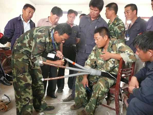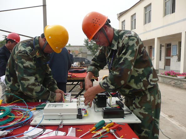 為了檢驗一線(xiàn)員工的技術(shù)水平和實(shí)際操作能力,進(jìn)一步提高廣大員工立足崗位快速成才的積極性,營(yíng)造 “比、學(xué)、趕、超”的學(xué)習氛圍,我公司于6月29日在臺南供電所舉辦了專(zhuān)業(yè)技術(shù)比武活動(dòng)。這次技術(shù)比武活動(dòng)分為面試考問(wèn)、實(shí)際操作二部分。來(lái)自5個(gè)供電所的30名職工進(jìn)行了同場(chǎng)競技。比武活動(dòng)項目有線(xiàn)路作業(yè)、配電安裝、變電業(yè)務(wù)操作等。線(xiàn)路作業(yè)賽場(chǎng)上,參賽隊員們頂著(zhù)烈日,比上桿速度,比操作規范、比制作工藝。配電柜安裝賽場(chǎng)上,隊員們聚精會(huì )神,揮汗如雨,繪圖、打眼、組裝、接線(xiàn)……。變電業(yè)務(wù)操作現場(chǎng),各代表隊的選手認真揣摩,填寫(xiě)設備檢修申請單、任務(wù)票、操作票,密切配合、嫻熟操作開(kāi)關(guān)設備。