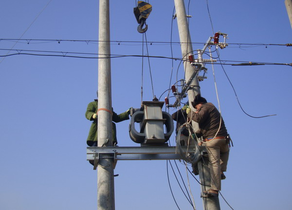 黃化制鈣公司居民區已有三十多年歷史,目前居住400多戶(hù)居民。由于使用年久老化,變壓器容量小、供電半徑大,線(xiàn)路長(cháng)、線(xiàn)徑細,電壓不穩,供電效率低。加上居民生活水平提高,用電量增加,供電矛盾日益突出,嚴重影響空調、冰箱等家用電器正常使用,居民意見(jiàn)很大??紤]到這項工程需投資資金較大,而老居民區情況復雜、經(jīng)濟上大多比較困難,為快速化解居民用電矛盾,讓他們過(guò)上祥和、舒心的春節,臺北供電所自籌資金,領(lǐng)導親自到現場(chǎng)勘察,擬定整改方案。該所人員全部出動(dòng),雇用工具車(chē)三臺、吊車(chē)兩輛,運送一臺100千伏安變壓器、兩個(gè)配電箱和10根電桿,自帶導線(xiàn)等材料趕赴施工現場(chǎng)。在居民的支持和配合下,克服了巷口復雜、圍墻歪斜、樹(shù)枝凌亂、布局很不規則等困難,奮戰多日,安裝一臺新變壓器,將原來(lái)的一條線(xiàn)進(jìn)入改為三條線(xiàn)進(jìn)入,增加供電功率,擴大供電容量。通過(guò)進(jìn)戶(hù)測試,均達到用電標準,給居民帶來(lái)了冬天的溫暖。