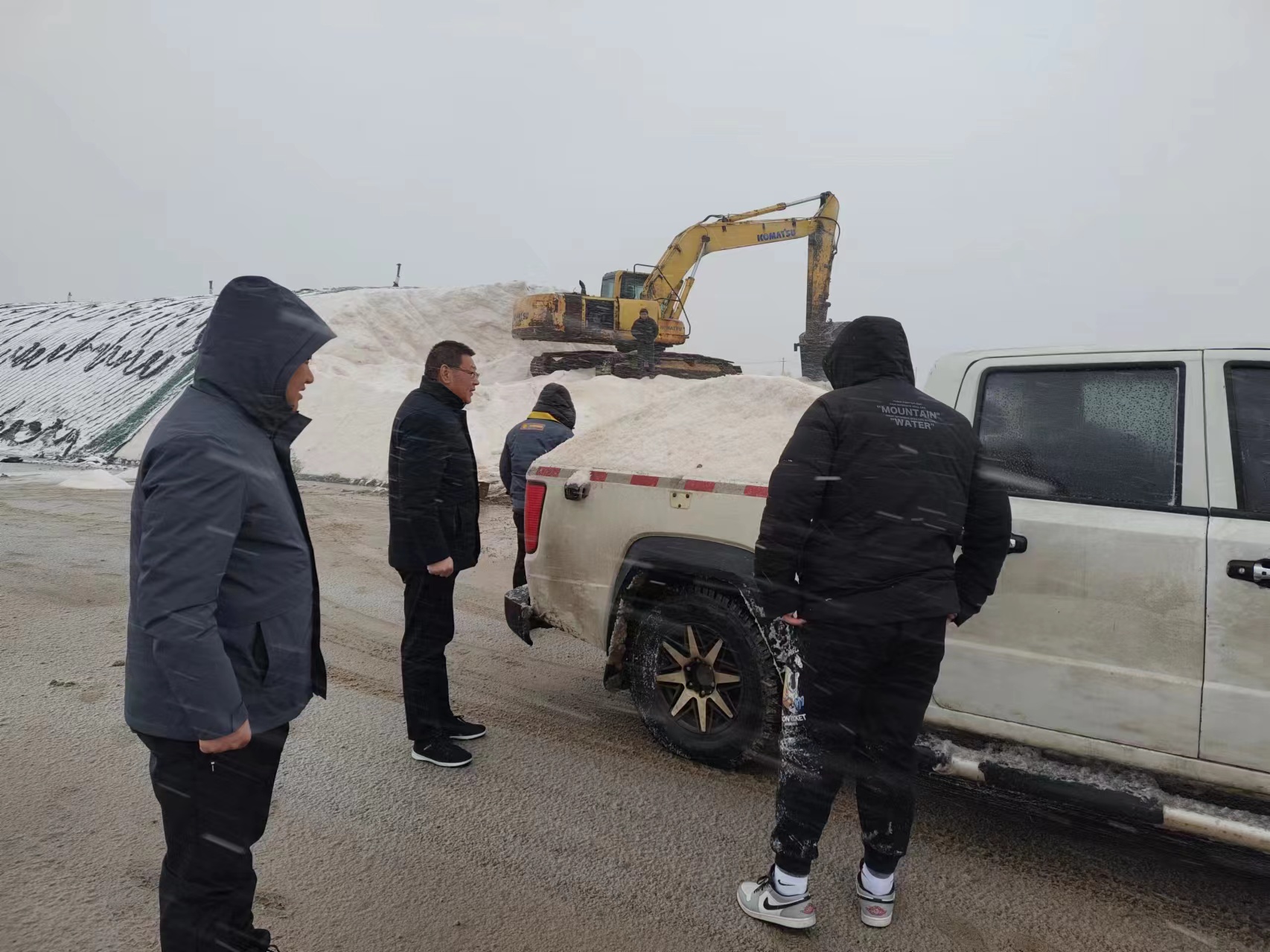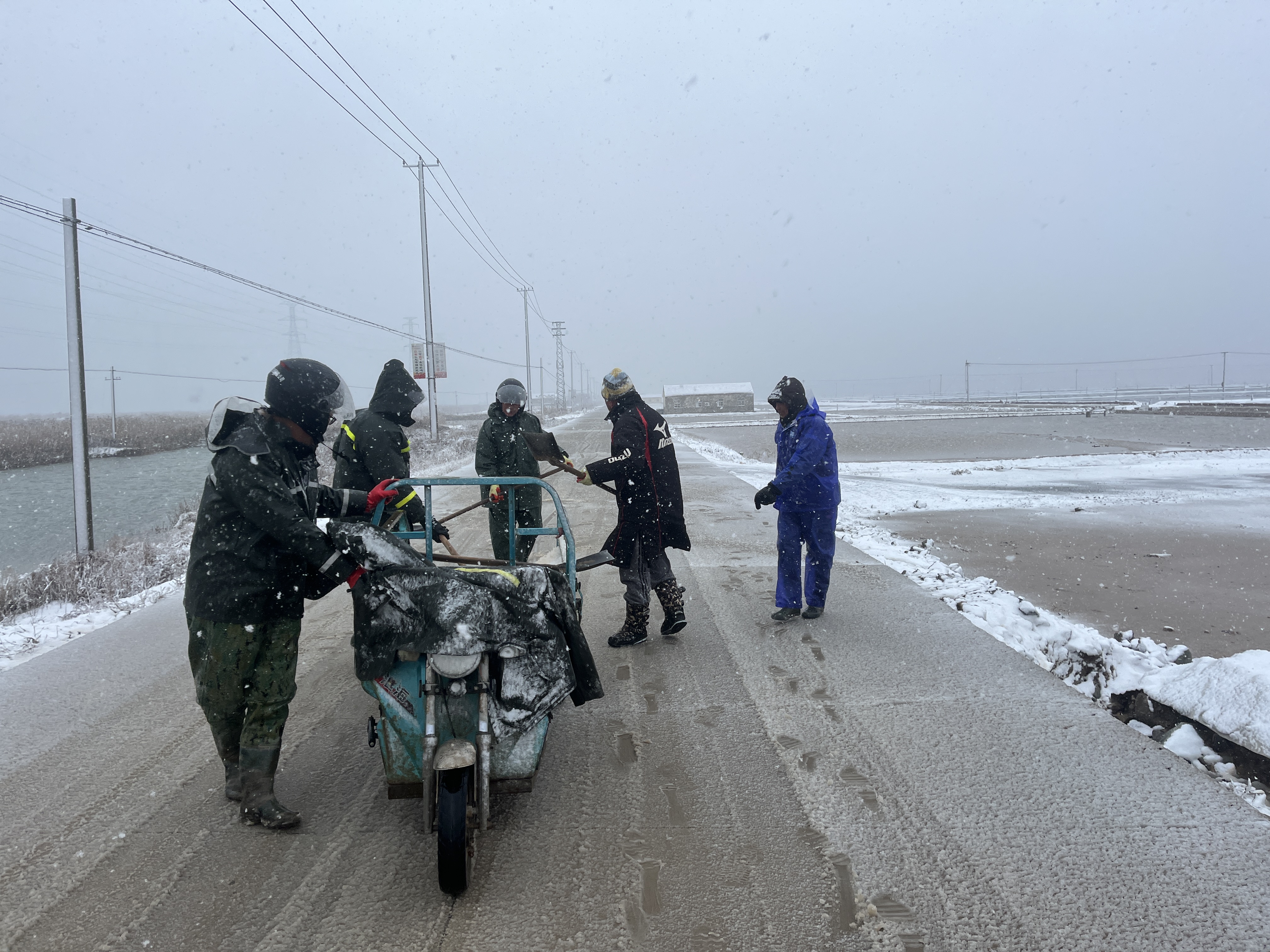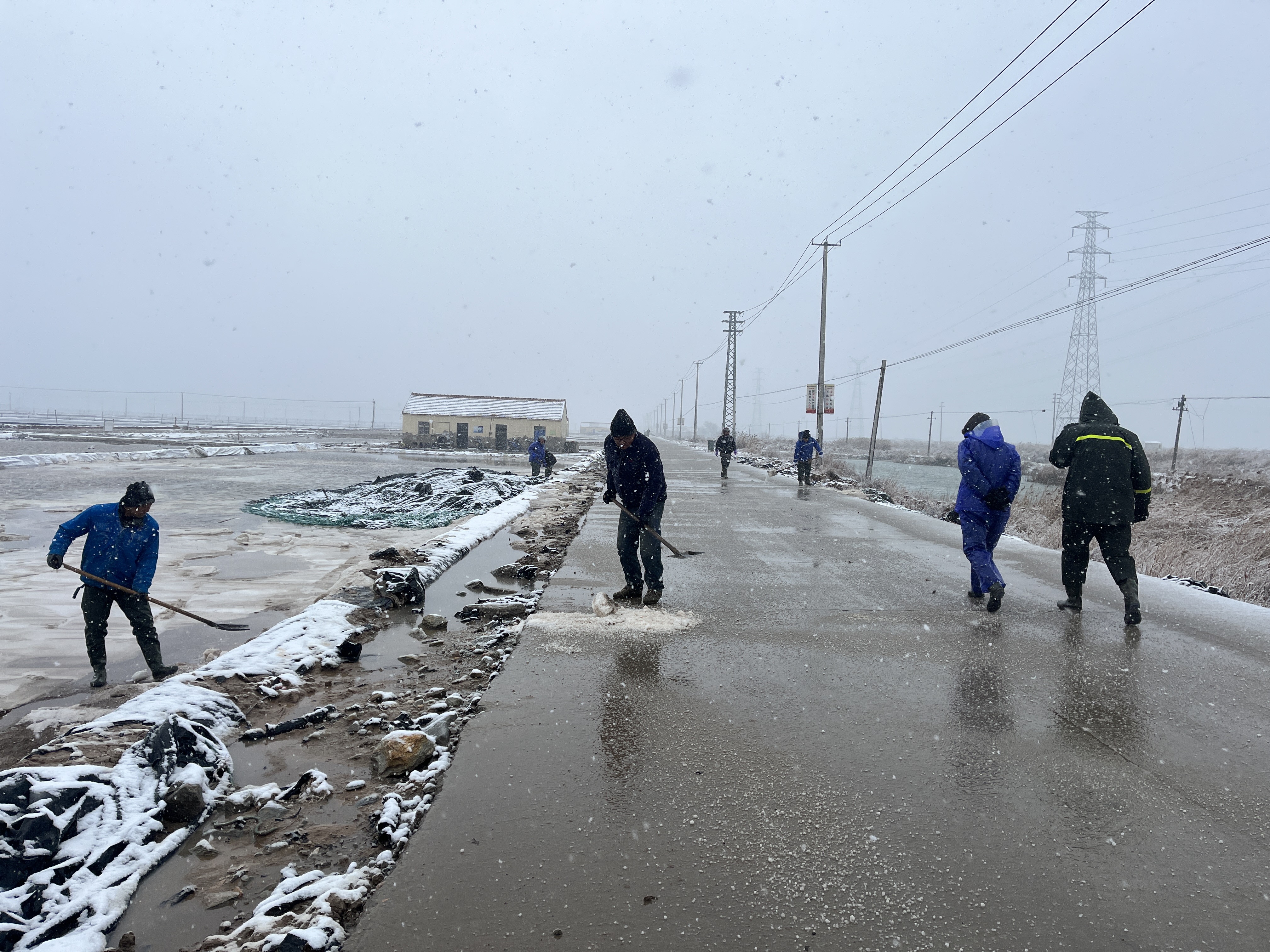 以雪為令,全力奔赴清雪戰一線(xiàn)。隨著(zhù)降雪量增大,采取“人工+機械”的作業(yè)方式,使用自產(chǎn)原鹽融雪劑對轄區中二圩居民點(diǎn)、鹽灘內部道路、辦公區域等20余條主次干道不間斷地毯式清雪除冰作業(yè)。清雪現場(chǎng),大家不畏嚴寒,積極行動(dòng),鏟的鏟、推的推,干得熱火朝天,開(kāi)辟出一條方便群眾出行的“安全路”。截止目前,已累計出動(dòng)車(chē)輛30余臺次,300余人次參與清雪除冰行動(dòng),確保職工群眾“雪中通行,雪后路清”。