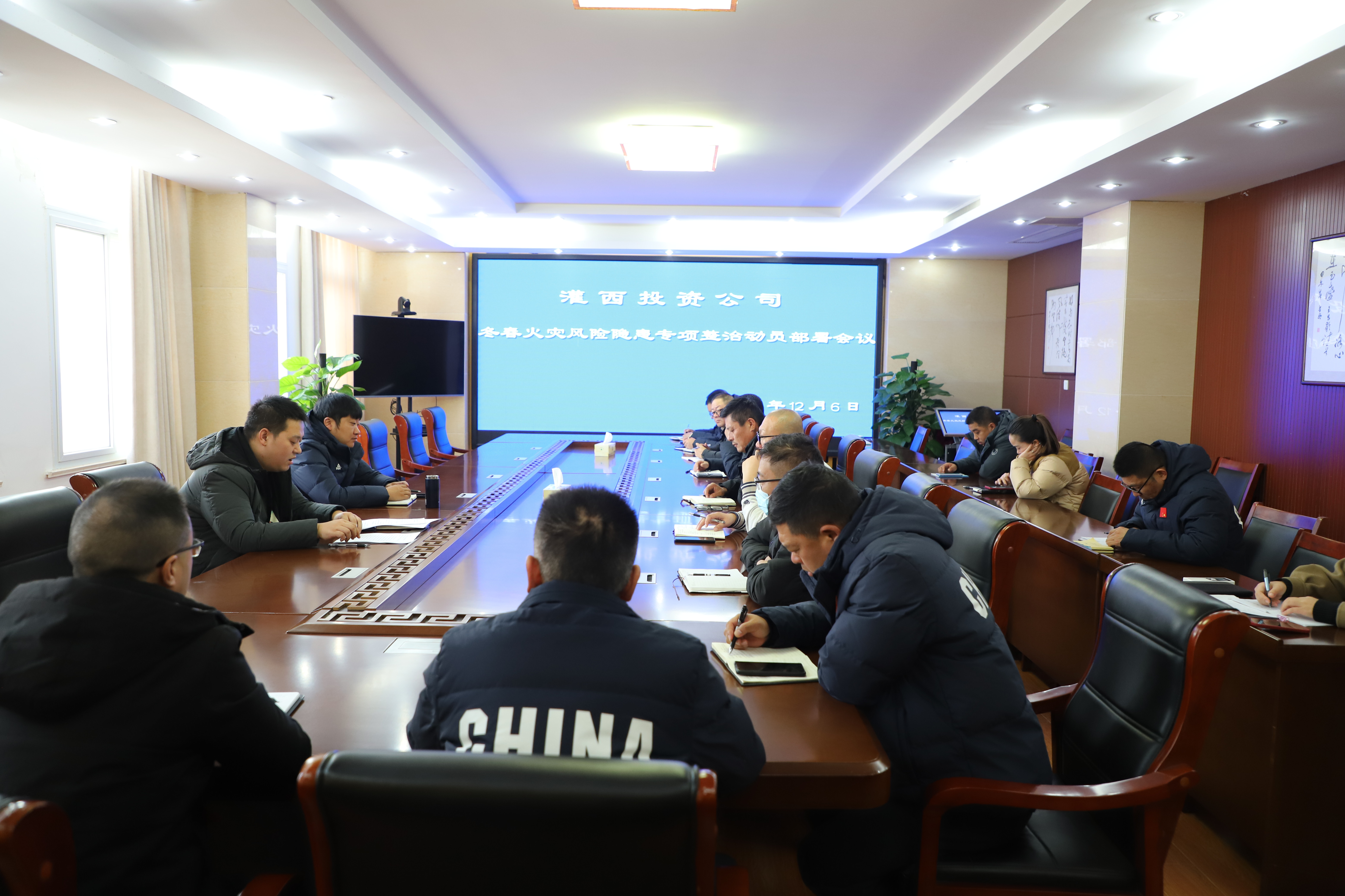 為了認真貫徹落實(shí)習近平總書(shū)記重要指示精神扎實(shí)抓好歲末年初消防安全工作,按照市安委辦、消委辦《關(guān)于深刻汲取火災事故教訓扎實(shí)開(kāi)展冬春火災風(fēng)險隱患專(zhuān)項整治工作的通知》(連安辦傳[2023]12 號)、集團公司關(guān)于立即開(kāi)展冬春火災風(fēng)險隱患專(zhuān)項整治工作(安管提示函23號)等文件要求,12月6日,投資公司召開(kāi)12月份安全工作例會(huì )暨灌西投資公司冬春火災風(fēng)險隱患專(zhuān)項整治動(dòng)員部署會(huì )議,常務(wù)副總經(jīng)理徐一林主持會(huì )議并講話(huà),各單位分管安全領(lǐng)導、機關(guān)相關(guān)部門(mén)人員參加會(huì )議。