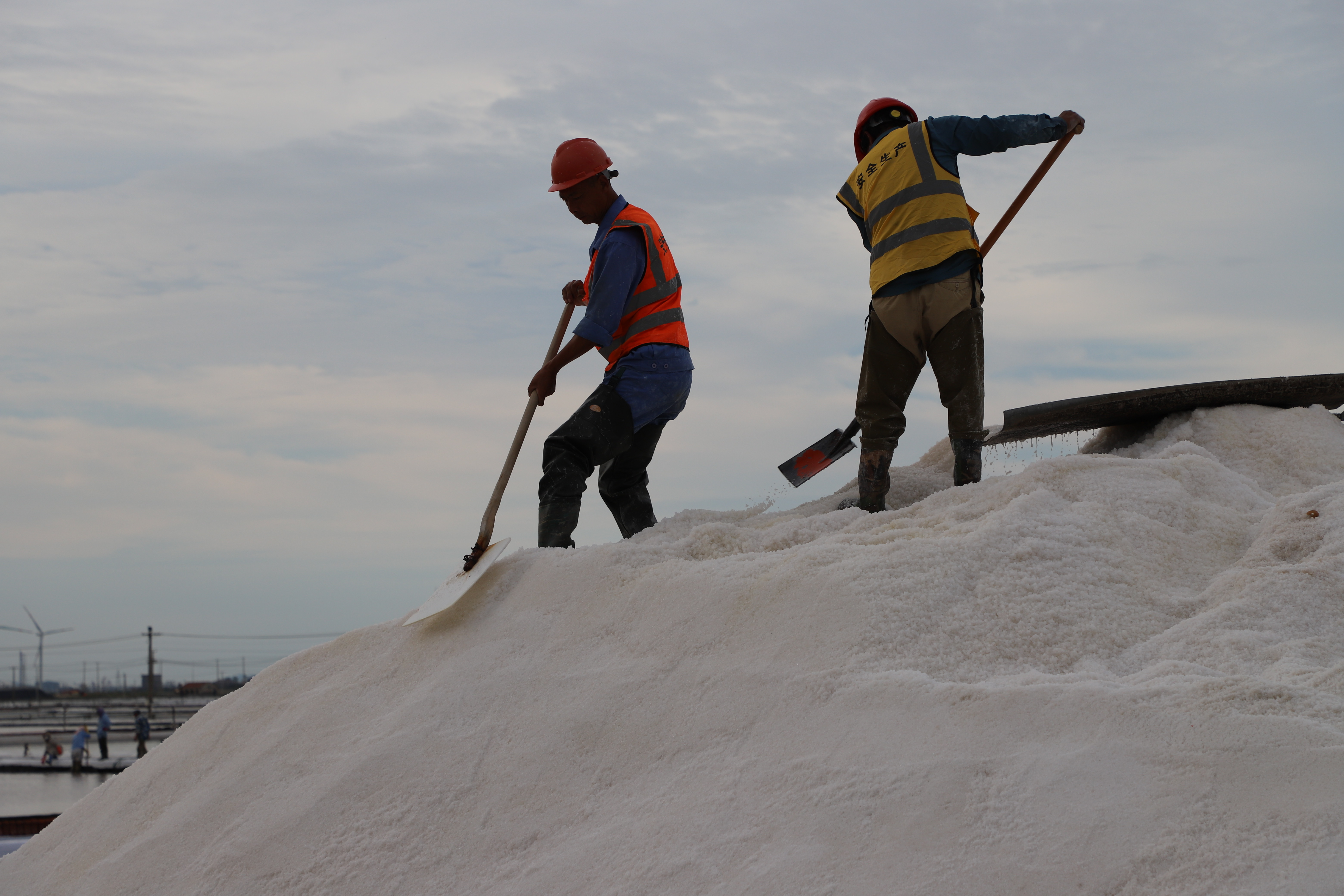 原鹽生產(chǎn)不松勁。每年的國慶假期總是與“秋扒”不期而遇。由于受連續的陰雨天氣影響,今年的秋扒工作一度延后。9月29日--9月30日,凌晨5點(diǎn)鐘,日曬鹽田的鹽圩小路像往常一樣成了一道最美的風(fēng)景線(xiàn),鹽工們全副武裝奔赴各自工作點(diǎn)位進(jìn)行收拉塑布、排淡等工作。為了搶時(shí)間,抓進(jìn)度,鹽工們緊鑼密鼓地忙碌起來(lái),籌備扒鹽工作,天氣剛轉好,只見(jiàn)有的在整理塑布,有的破碴,10月2日,10臺扒鹽機組全部運轉起來(lái),潔白的鹽廩逐漸擴大,節日期間將扒鹽30000余噸。