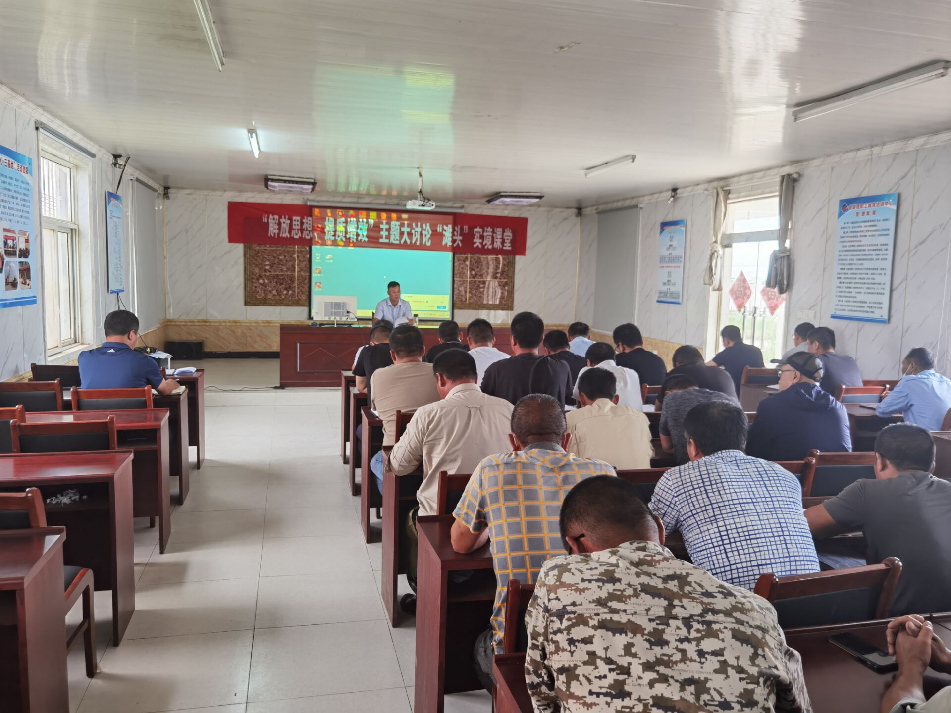 8月16日上午,灌西投資公司結合產(chǎn)業(yè)板塊發(fā)展實(shí)際,開(kāi)展以“解放思想 提質(zhì)增效”為主題的“灘頭”實(shí)境課堂、“田頭”實(shí)境課堂、“塘頭”實(shí)境課堂、“碼頭”實(shí)境課堂 、“路頭”實(shí)境課堂五大教育實(shí)境課堂。領(lǐng)導班子成員分片區進(jìn)行形勢任務(wù)教育宣講。