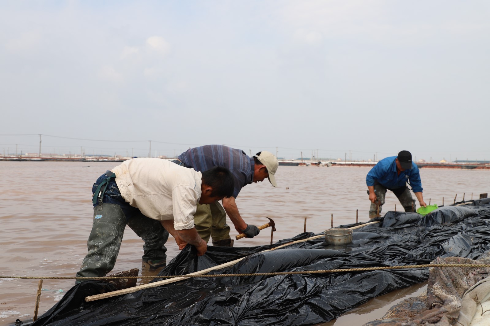 同心支援有溫度。受當晚突發(fā)的狂風(fēng)暴雨強對流天氣,導致日曬制鹽公司38根電線(xiàn)桿被暴風(fēng)折斷、60塊結晶池塑布受損,20塊塑布需要更換,130余間值班房及機房屋頂瓦面損壞,給鹽業(yè)生產(chǎn)造成嚴重安全隱患。6月14日凌晨5點(diǎn),來(lái)自于該公司各條戰線(xiàn)近180人,支援搶險搶時(shí)搶工,進(jìn)行結晶池塑布安裝、廢棄物清理等工作;來(lái)自灌西供電所、徐南供電所的兄弟單位14名專(zhuān)業(yè)電工,第一時(shí)間到生產(chǎn)現場(chǎng)進(jìn)行清除電力故障、更換電線(xiàn)桿等電力工程作業(yè)。充分展現我們工投人在困難面前同力協(xié)契、踔厲奮發(fā)的拼搏精神,為企業(yè)高質(zhì)量的安全發(fā)展奠定堅實(shí)基礎。