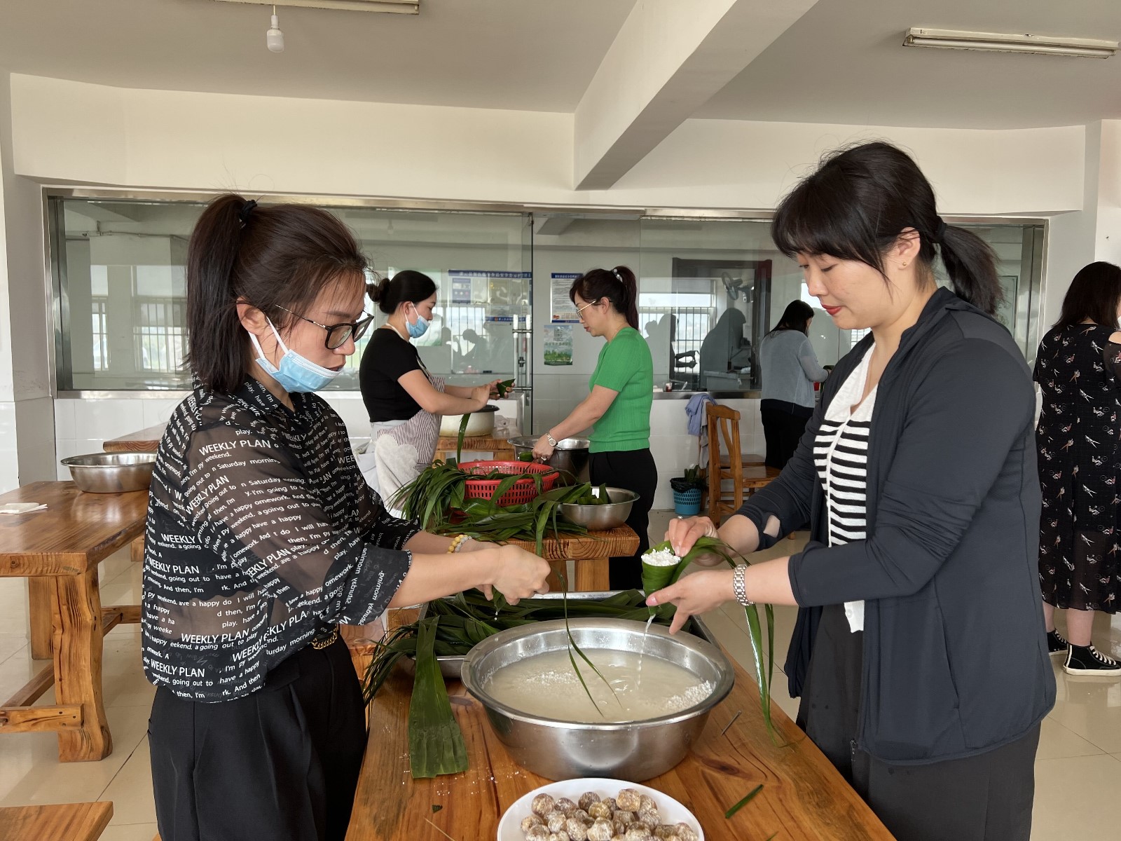 卷起粽葉;填入糯米餡;粽葉上下翻飛;成型的粽子纏上線(xiàn)……包粽子高手云集賽場(chǎng),包粽子的過(guò)程可謂行云流水。一雙雙巧手揮動(dòng)間,一片片清香的粽葉、一粒粒晶瑩的糯米,瞬間變成了一個(gè)個(gè)誘人的粽子。不多會(huì )兒的功夫,一串串碧綠飽滿(mǎn)的粽子便堆積在盆中,引得圍觀(guān)者嘖嘖贊嘆。女工們有說(shuō)有笑,熱熱鬧鬧,有的還忍不住現學(xué)現包,處處洋溢著(zhù)濃郁的節日氣氛。經(jīng)過(guò)一個(gè)多小時(shí)的奮戰,來(lái)自機關(guān)的石雯以139個(gè)的成績(jì)榮獲冠軍。