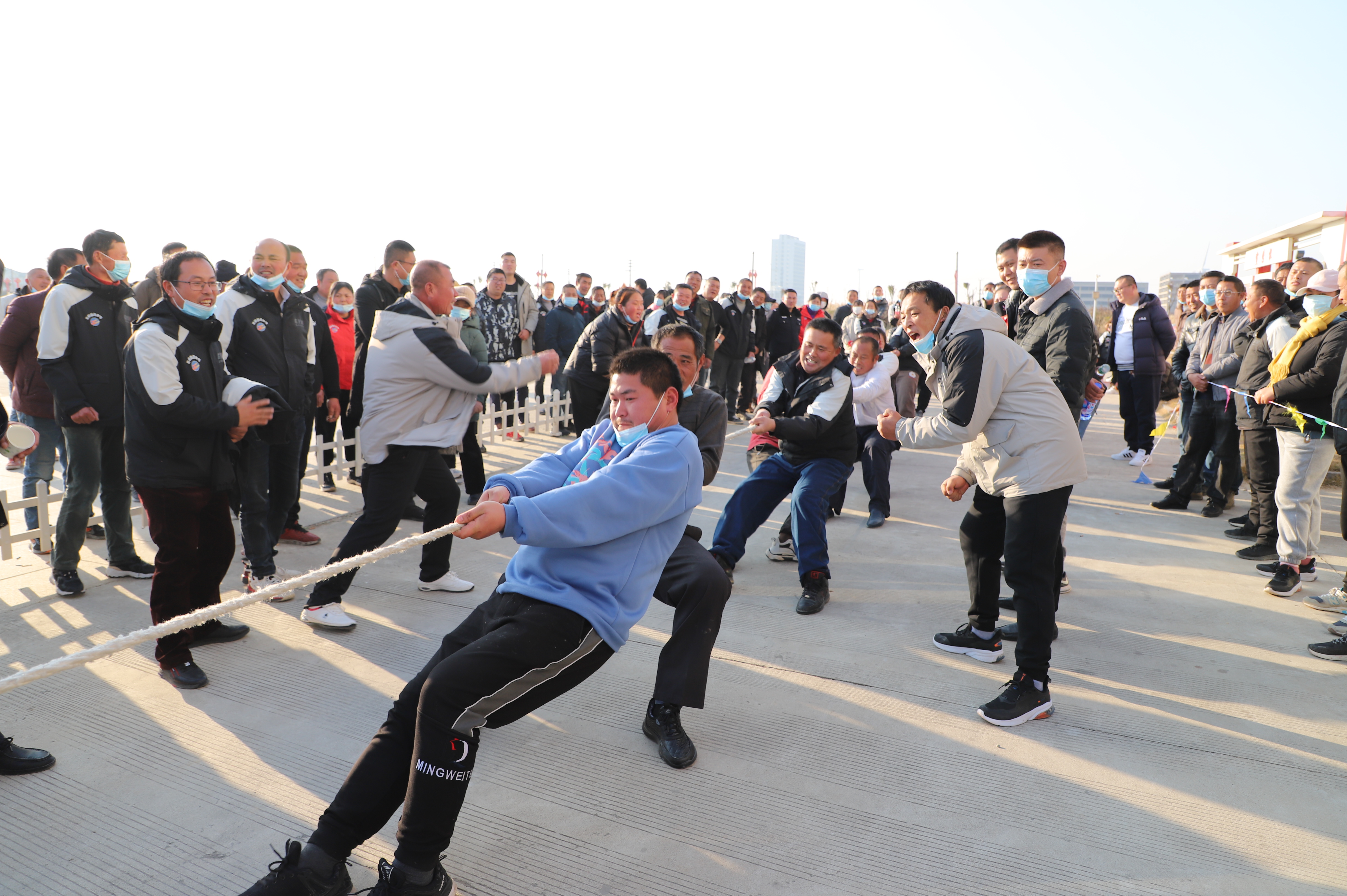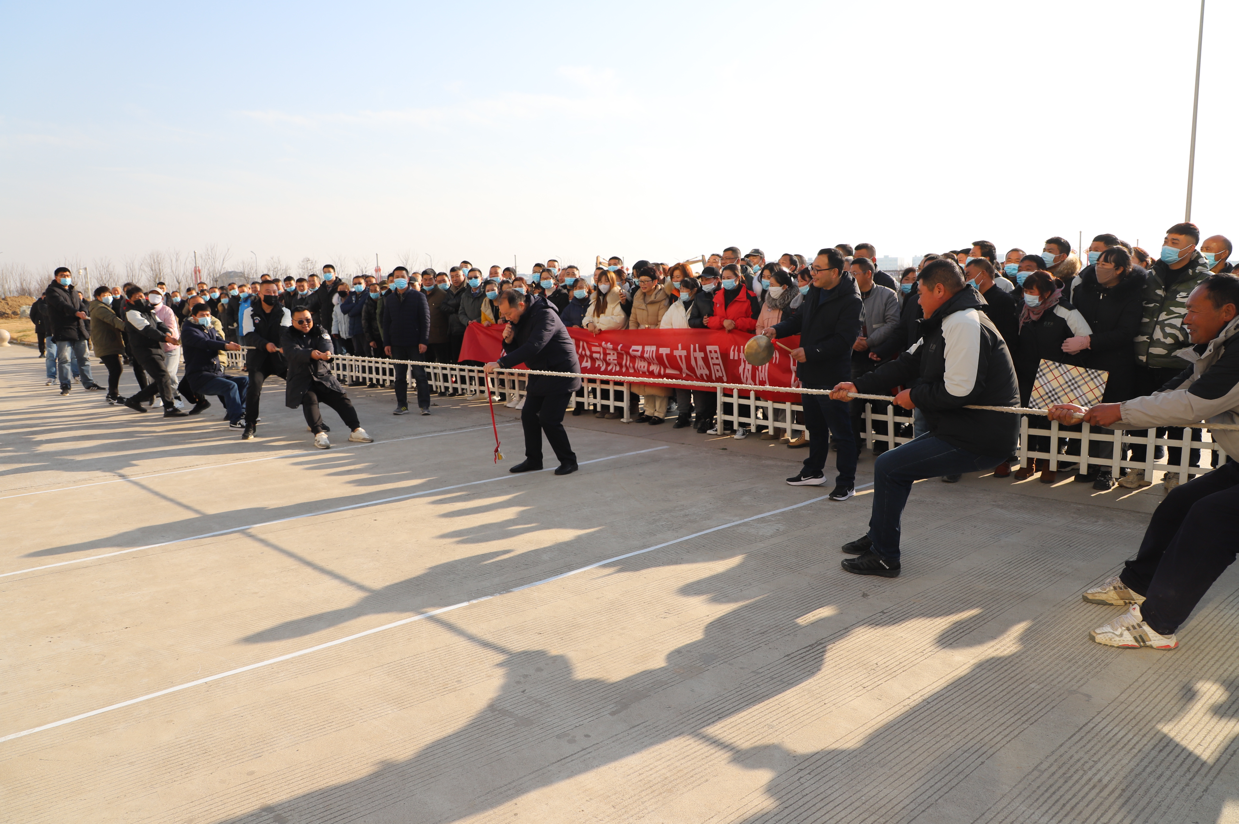 開(kāi)幕式結束以后,緊張激烈的拔河比賽立即展開(kāi)。由新河、埓南、宵洋等單位組織的13支參賽隊伍按照抽簽順序逐一上臺亮相。賽場(chǎng)上,鼓舞聲、吶喊聲此起彼伏,參賽隊員們團結協(xié)作、不到最后一刻永不言棄的精神贏(yíng)得了在場(chǎng)觀(guān)眾的陣陣掌聲。經(jīng)過(guò)近一個(gè)小時(shí)的激烈角逐,最終埓南制鹽分公司一隊力壓群雄,奪取拔河比賽第一名,新河制鹽分公司二隊、新河制鹽分公司一隊及宵洋物流公司代表隊分獲二至四名。