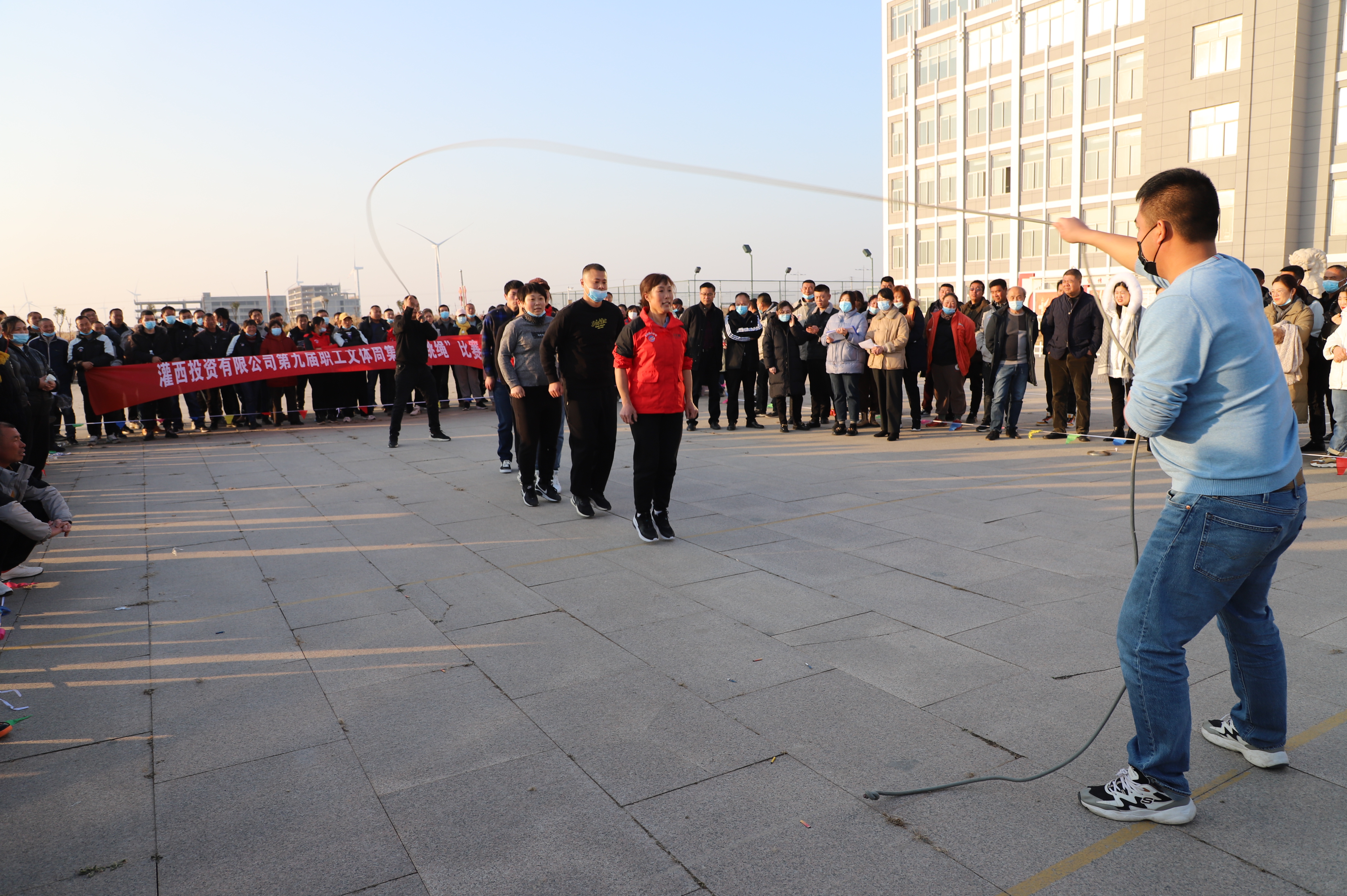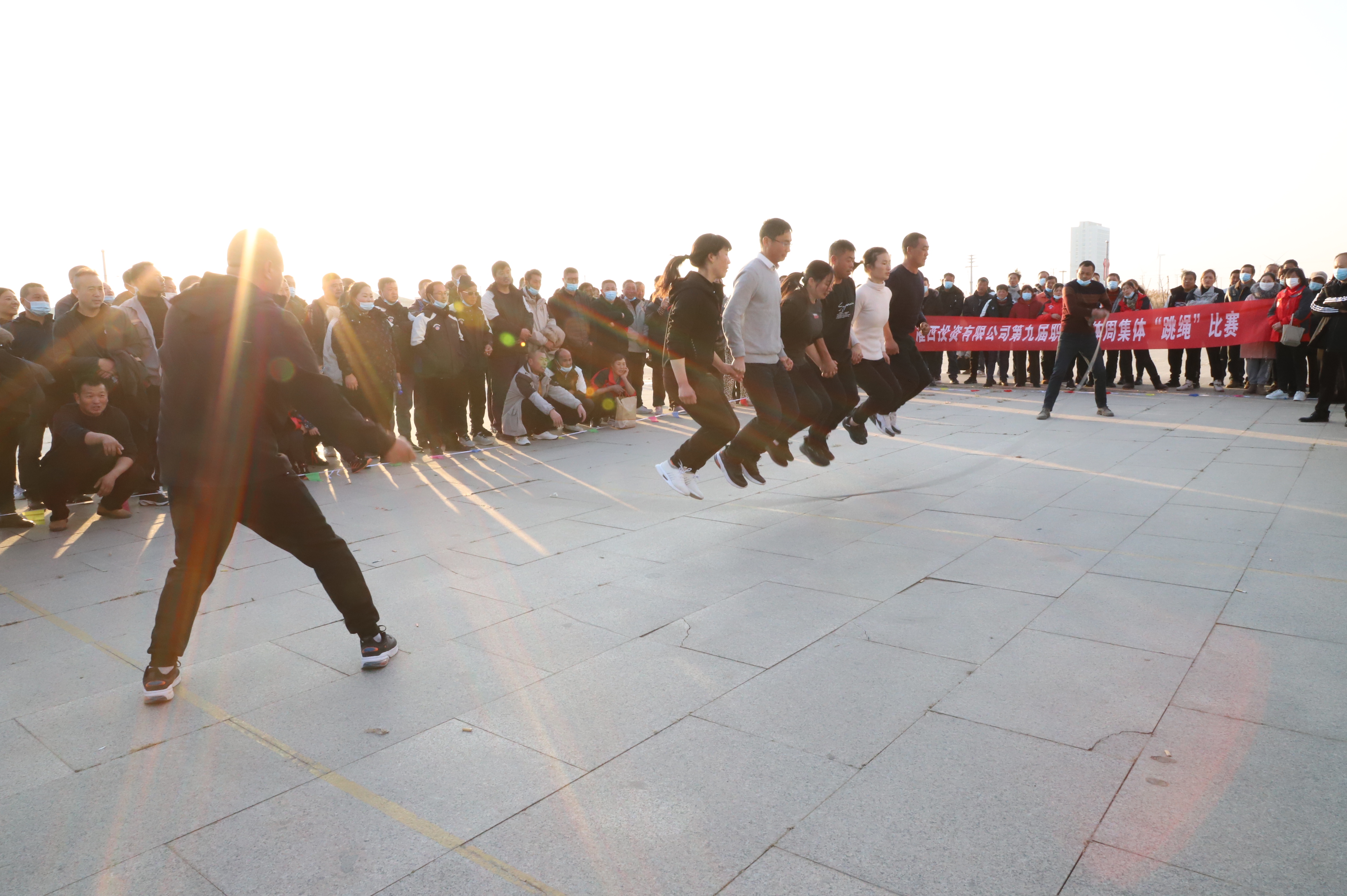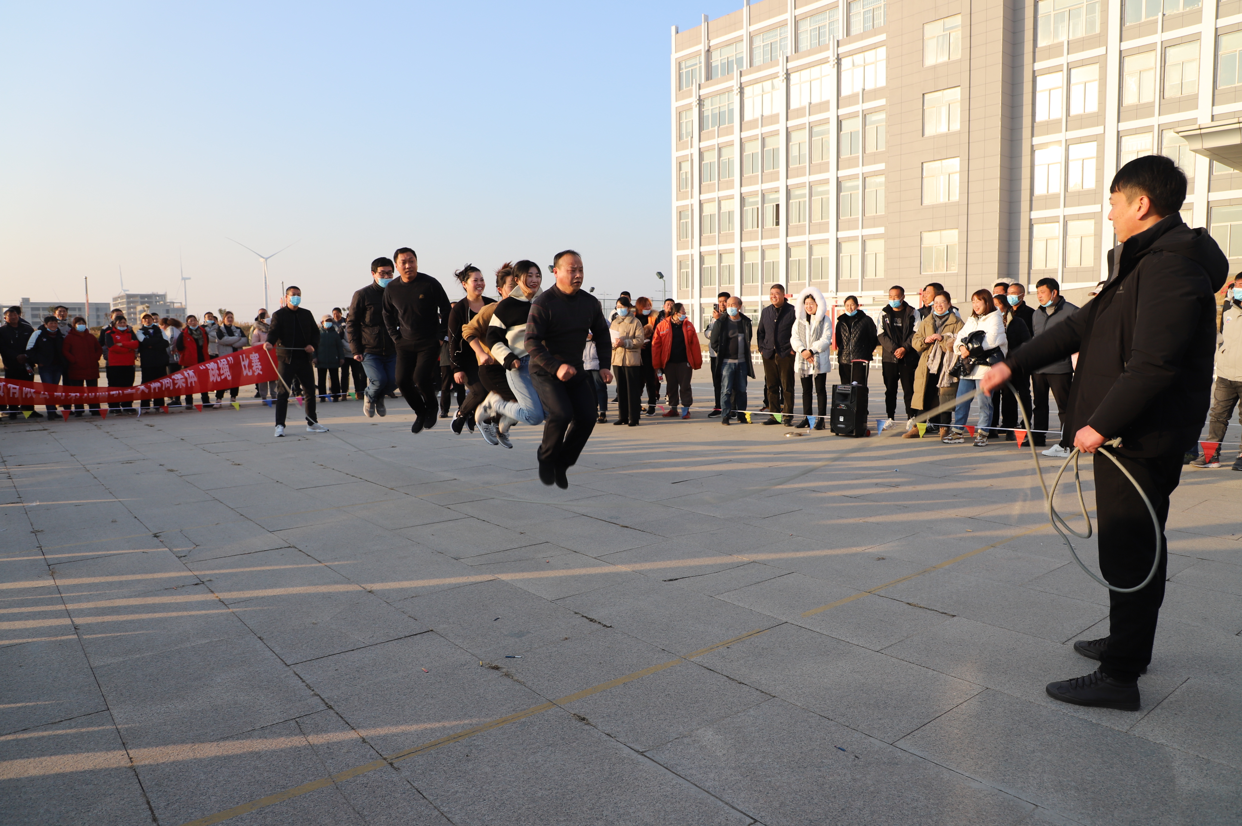 隨后進(jìn)行跳繩比賽,來(lái)自南翼、新河、埒南等10支參賽隊伍逐一上臺比賽,觀(guān)眾隨著(zhù)場(chǎng)上比賽隊員跳繩的節奏,不約而同地打著(zhù)節拍、數著(zhù)數,最終埒南制鹽公司代表隊憑借刻苦訓練與創(chuàng )新——參賽隊員手牽手共同協(xié)作,奪得第一名,新河制鹽公司、宵洋物流公司、生產(chǎn)服務(wù)中心分獲二至四名。(西宣)