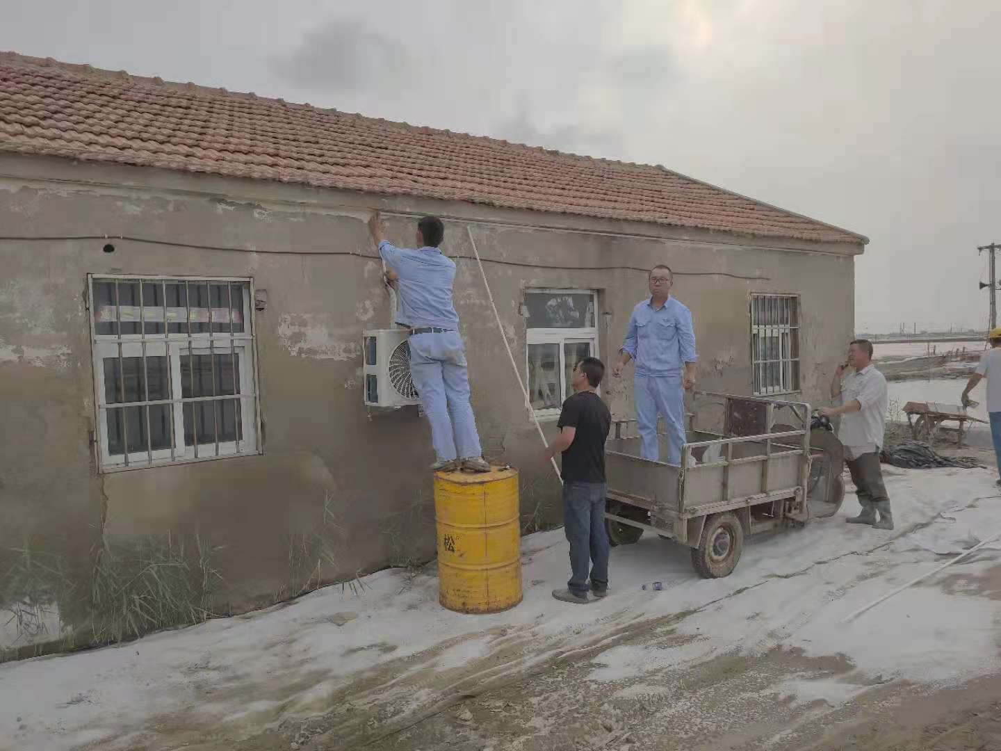 高溫酷暑、炎炎烈日下,在日曬制鹽的灘頭到處都是大汗淋漓、被曬得黝黑的鹽工們,因為他們的堅守和辛勤付出,才有了公司屢創(chuàng )佳績(jì)的今天?!爸蛋嗍姨珶崃?,夜間值班無(wú)法休息?!丙}工有訴求,組織有回應,公司為此按程序集中采購了一批空調。為能更快更好將空調安裝至各班組值班室,維護工們不辭辛勞與安裝人員一起加班加點(diǎn),現已全部安裝到位。