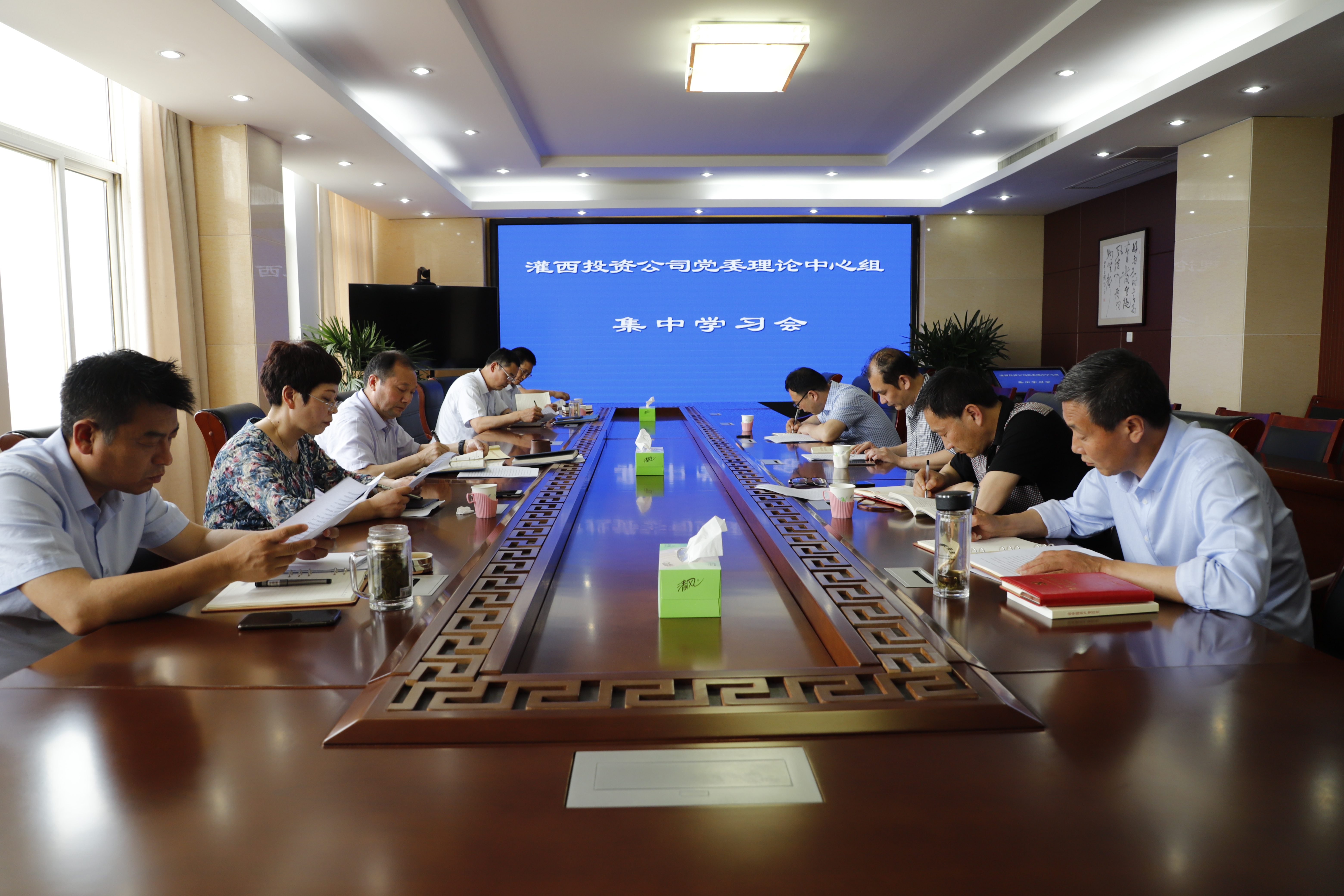 6月1日下午,灌西投資公司黨委中心組召開(kāi)集中學(xué)習會(huì )。公司黨委書(shū)記、董事長(cháng)、總經(jīng)理李國文主持,公司黨委中心組成員參加學(xué)習會(huì )。