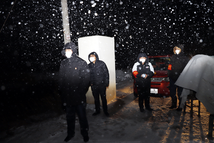 2月15日,2020年第一場(chǎng)雪,在這個(gè)風(fēng)雪交加的天氣,最美的不是天地一色的雪景,而是拼搏在疫情防控一線(xiàn)的身影。在灌西日曬制鹽各個(gè)疫情防控點(diǎn)堅守一線(xiàn)的黨員干部、職工群眾沒(méi)有人退縮,沒(méi)有人遲疑,他們不辭日夜的奮戰,只為守護更多人的健康,更多家庭的平安。