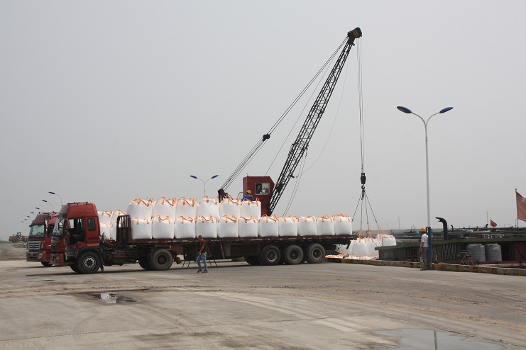 據了解,在國慶長(cháng)假期間,該公司對各項工作做了充分的準備,加強節日期間碼頭正常運營(yíng)管理,對碼頭工人進(jìn)行了排班,對吊裝設備、裝卸人員進(jìn)行細致的安排部署,確保了國慶長(cháng)假生產(chǎn)經(jīng)營(yíng)不停息。雨日過(guò)后,從3日開(kāi)始,五灌河碼頭就是一派車(chē)水馬龍景象,只見(jiàn)一輛輛滿(mǎn)載噸袋的運輸卡車(chē)整齊的停放在路邊,一艘艘貨船在泊位上靜靜停泊等待,兩臺吊車(chē)正在進(jìn)行著(zhù)噸袋吊裝,掛鉤、移動(dòng)、解鉤,車(chē)上船艙內工人密切配合,動(dòng)作熟練,將潔白的噸袋穩穩地裝船,每天吊裝噸袋30多車(chē)。在不遠處的自卸碼頭,一輛輛運鹽車(chē)輛,通過(guò)卸鹽滑板,直接將滿(mǎn)車(chē)斗的鹽倒入船艙,僅兩三天就裝鹽2000余噸。(季興勝)