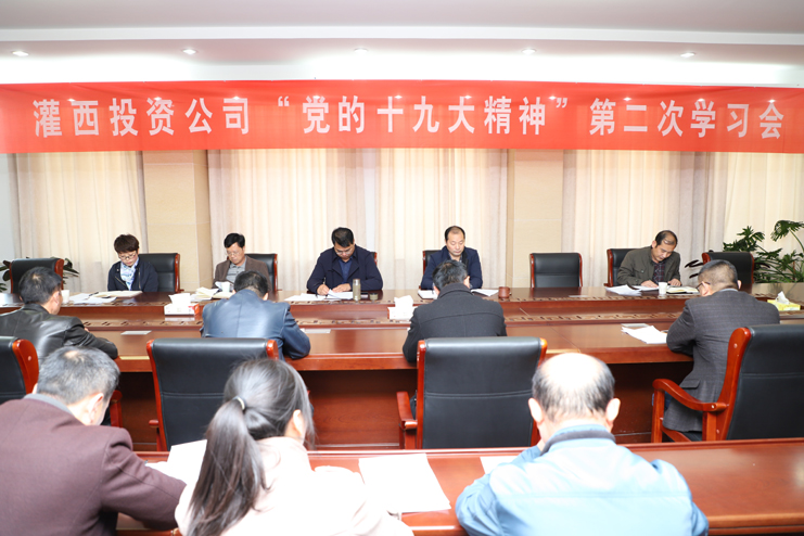11月10日,灌西投資公司黨委召開(kāi)“黨的十九大精神”第二次學(xué)習會(huì )暨支部書(shū)記工作例會(huì ),公司領(lǐng)導王德志、李國文、古浩光、王宏,各支部書(shū)記、黨群部門(mén)人員及掛職基層支部副書(shū)記年輕管理人員參加會(huì )議。