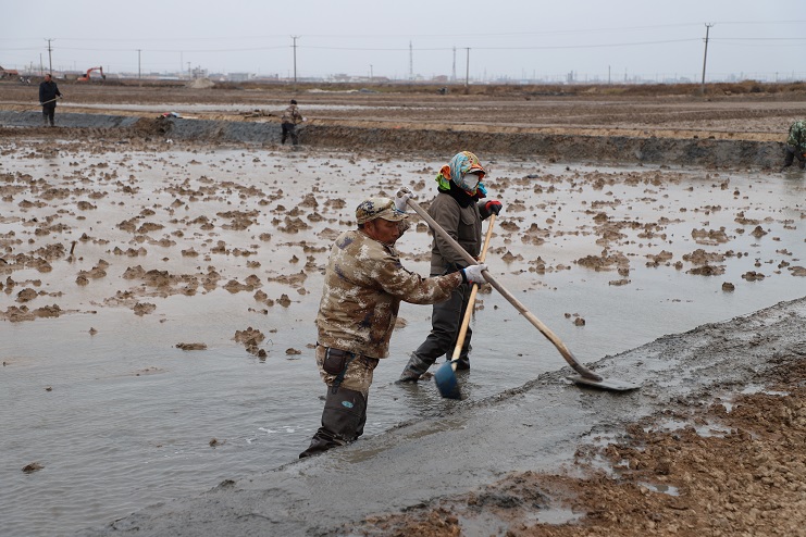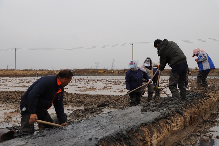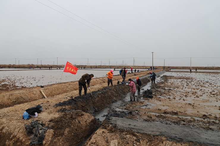 11月29日上午,雖然天氣寒冷,但是在海鹽基地新改造的制鹵灘上,卻到處是一派火熱的勞動(dòng)景象,參加“大會(huì )戰”的工人多達100余人,只見(jiàn)他們有的潑水,有的鏟泥,有的撈溝,有的做埝,大家分工協(xié)作。據了解,為了提高海水制鹵能力,確保海鹽產(chǎn)量,今年公司專(zhuān)門(mén)對海鹽基地部分廢棄灘地進(jìn)行了改造,以進(jìn)一步增加制鹵面積。近期,隨著(zhù)改造工程接近尾聲,公司又組織精干力量對新改造灘地繼續進(jìn)行修整,以確保新建的制鹵灘地能夠盡快投入使用,為明年海鹽生產(chǎn)工作的正常有序開(kāi)展奠定扎實(shí)的基礎。