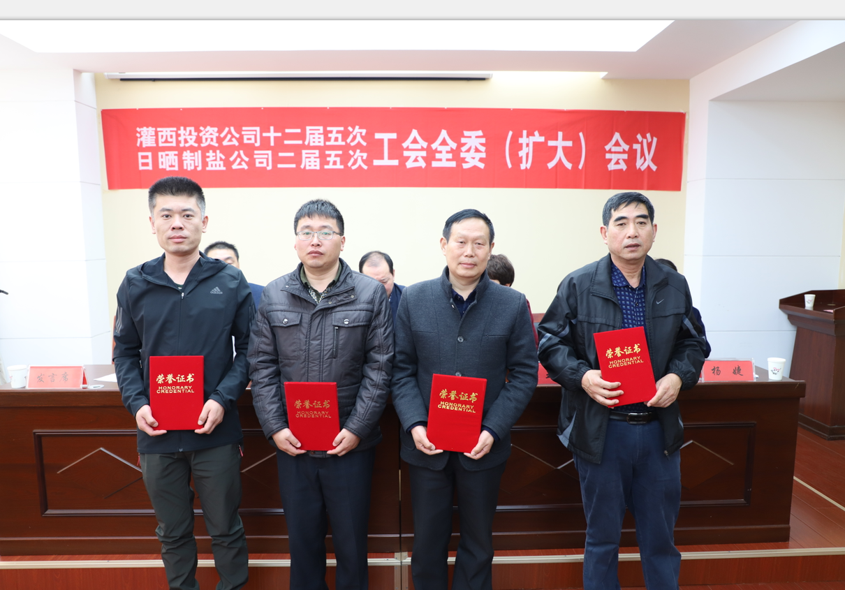 3月28日,灌西投資公司十二屆五次、日曬制鹽公司二屆五次工會(huì )全委(擴大)會(huì )議在機關(guān)四樓會(huì )議室召開(kāi),公司黨委書(shū)記、董事長(cháng)、總經(jīng)理李國文,紀委書(shū)記、工會(huì )主席王宏及各單位分會(huì )主席、女工主任參加會(huì )議,會(huì )議由公司工會(huì )副主席孫武善主持。
