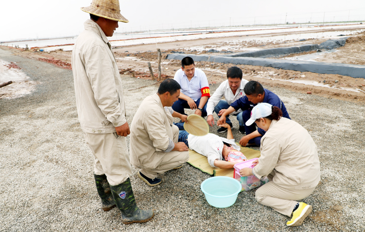 此次演練過(guò)程中,安全監管部李長(cháng)軍主持了這次演練活動(dòng),埒南制鹽分公司職工及管理人員參與其中,演練模擬現場(chǎng)有三個(gè):1、職工在灘頭塑池堰上突然中暑(重度)。2、職工在廩基小鹽化鹵調鹵中接觸老化線(xiàn)路接頭時(shí)不慎觸電(傷害較重)。3、職工在上班途中三輛電瓶車(chē)相撞(跌傷較重)。在救援過(guò)程中,大家各司其職,齊心協(xié)力,配合默契,有條不紊成功完成了此次演練活動(dòng)。通過(guò)這次應急演練,進(jìn)一步提高了公司員工應對緊急事件的自我保護和防衛能力,保證員工在發(fā)生突發(fā)事件時(shí),能熟練應對、有序救援,最大限度地減少事故帶來(lái)的損害,切實(shí)保護員工的安全。