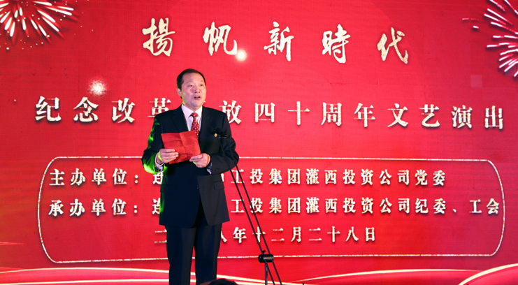 偉大變革,書(shū)寫(xiě)壯麗史詩(shī);永志不忘,奮進(jìn)復興征程。12月28日,灌西投資公司以“揚帆新時(shí)代”為主題的慶祝改革開(kāi)放40周年文藝匯演在灌云縣臨港產(chǎn)業(yè)管委會(huì )報告大廳上演。工投集團公司領(lǐng)導戴鴻鳴、汪群、劉承志等領(lǐng)導與職工群眾代表700余人共同欣賞了這臺振奮人心的視聽(tīng)盛宴。投資公司黨委書(shū)記、董事長(cháng)、總經(jīng)理李國文作了演出致辭。