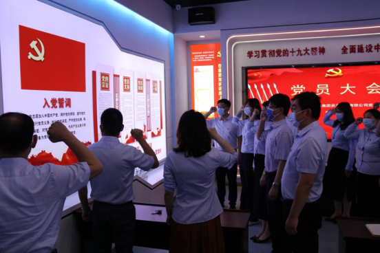新老黨員一起面向鮮紅的黨旗,重溫入黨誓詞。莊嚴隆重的氛圍,鏗鏘有力的誓言,使全體黨員更加堅定了為黨和人民事業(yè)奮斗終生的決心。
