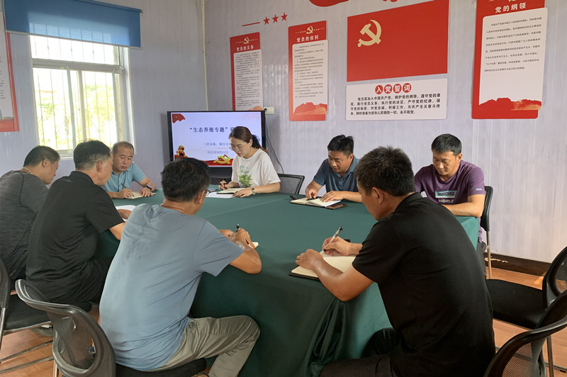 8月15日下午,在三洋分場(chǎng)黨建活動(dòng)室,一場(chǎng)生態(tài)養殖專(zhuān)題研討會(huì )正如火如荼進(jìn)行中,三洋分場(chǎng)、黃沙分場(chǎng)全體管理人員參加。