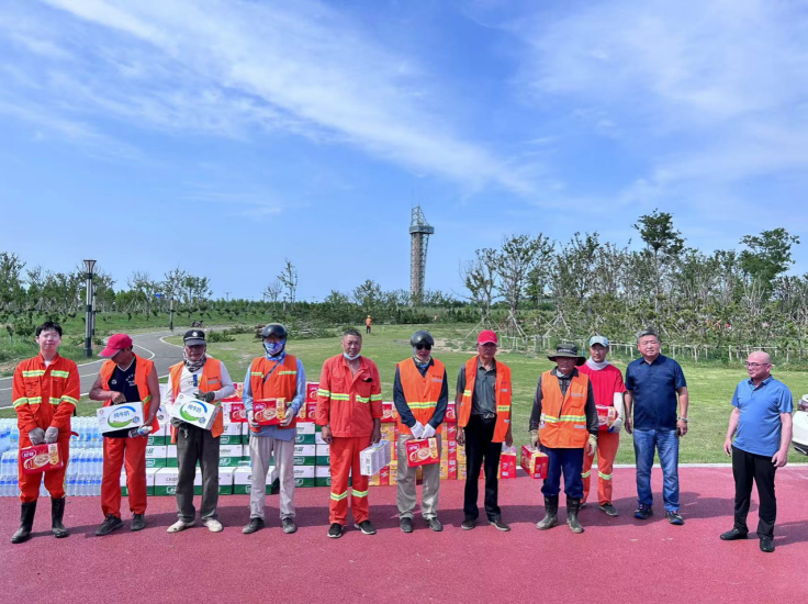 6月25日下午,正值端午假期,夏日驕陽(yáng),熱浪襲人,綠化工人扛著(zhù)酷暑奮戰在樹(shù)木移植一線(xiàn)。同時(shí),也牽動(dòng)著(zhù)公司領(lǐng)導的心。投資公司黨委書(shū)記、董事長(cháng)、總經(jīng)理莊清付冒著(zhù)炎炎烈日來(lái)到張圩湖公園,走訪(fǎng)慰問(wèn)高溫下奮戰在一線(xiàn)的廣大職工。