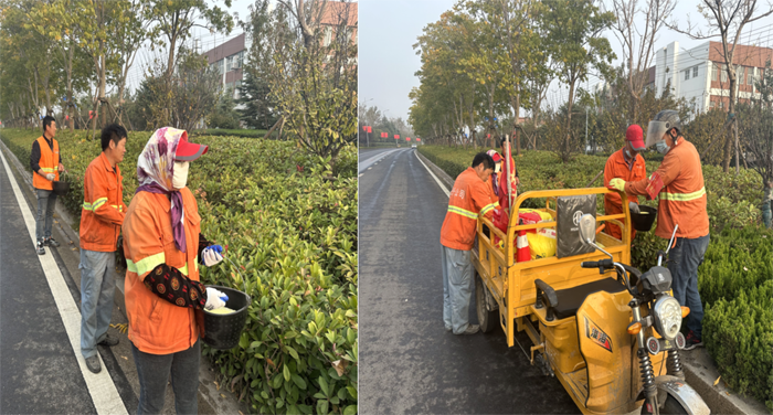 ? ? ? 工作中,班長(cháng)李洪利、副班長(cháng)李明春,帶領(lǐng)綠化班組30余人,對云港路、祥和路仁和路,進(jìn)行施肥作業(yè)?!皥@林衛士”手拿施肥工具,2-3人為一小組,采用徒步拋灑方式進(jìn)行作業(yè),縱三路的側分帶雪松,因長(cháng)勢不良土壤環(huán)境因素,為重點(diǎn)施肥對象。云港路路線(xiàn)較長(cháng),采取分段作業(yè),重點(diǎn)突破。經(jīng)過(guò)一天的忙碌,完成既定路段的施肥任務(wù)。