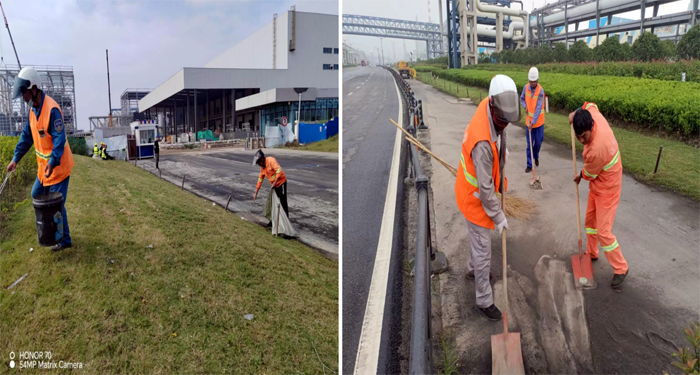 道路保潔一如繼往。該分公司制定國慶長(cháng)假保潔保障工作方案,黨員生產(chǎn)骨干踴躍參與節日期間主要干道路保潔工作任務(wù)。女子班、徐圩大道、徐新路、海濱大道、石化園區道路上到處閃動(dòng)了著(zhù)他們忙碌的身影。道路兩側時(shí)而彎腰撿拾,打包裝運各種垃圾。班長(cháng)龔飛身先士卒,上下?lián)]動(dòng)手中抹布確保節日期間站臺,座椅一塵不染。園區班組保潔人員人工清掃護欄兩側拉煤路段灰塵20多處,500多米長(cháng),現場(chǎng)工作中無(wú)懼粉塵污染,仍然恪盡職守。